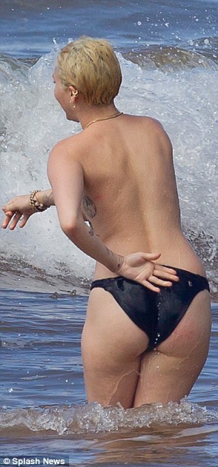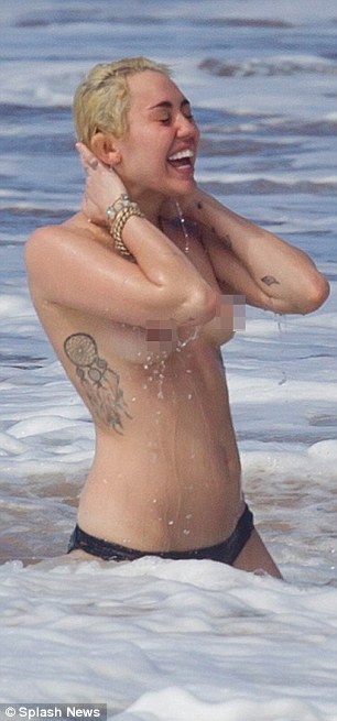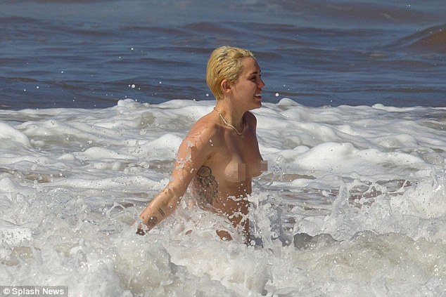 На этой неделе 22-летняя поп-звезда топлесс резвилась в волнах океана со своим бойфрендом 21-летним Патриком Шварценеггером, с которым встречается последние три месяца.
