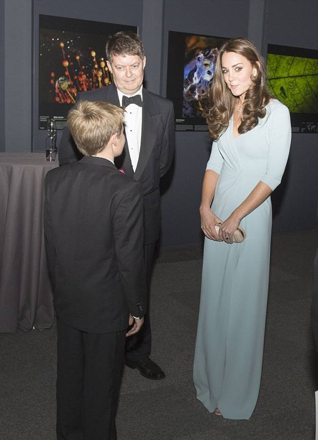 Она приняла участие в награждении фотографов в категории до 18 лет, которые победили в конкурсе "Фотография дикой природы". На ней было одето синее платье от ее любимого дизайнера Дженни Пэкхэм и ювелирные изделия Моники Винадер. Что интересно, многие увидели знак в том, что Кейт одела платье синего цвета. По их мнению, она в очередной раз ждет сына.
