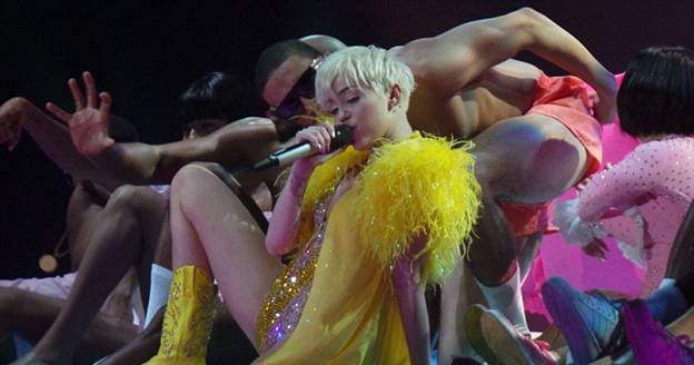 Во вторник вечером состоялся первый концерт Майли Сайрус в рамках ее европейского этапа мирового турне Bangerz. И, судя по отзывам, у певицы открылось второе дыхание на непристойности и шокирующее поведение на сцене.