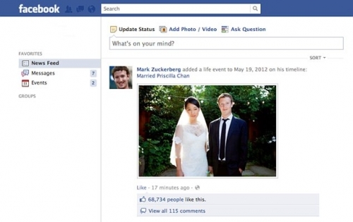 Основатель Facebook, Марк Цукерберг, изменил свой статус в семейном положении на женат.