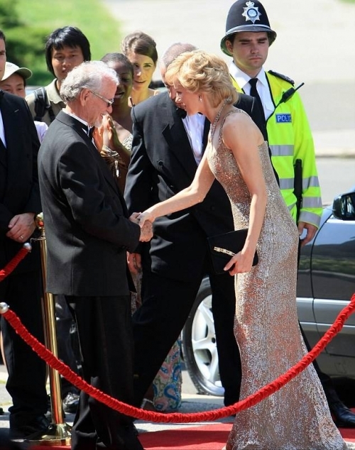 Актриса выглядела очень похоже на принцессу Ди, когда вышла из машины в длинном до пят вечернем платье.