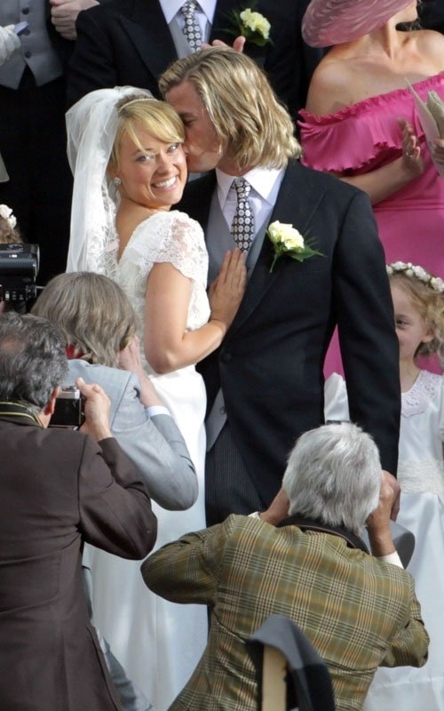 Осторожно, снимается кино: очаровательные жених Крис Хемсворт и невеста Оливия Уайлд в фильме "Гонщик".