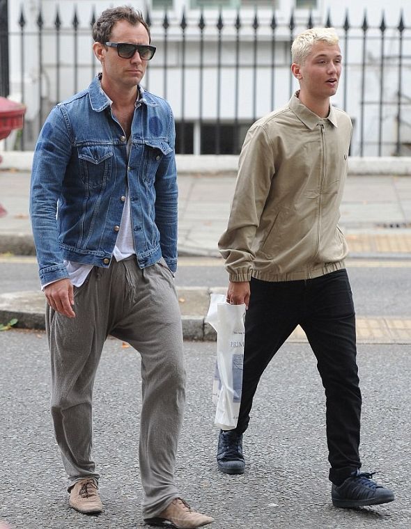 Британский ресурс Daily Mail разместил на сайте фотографии успешного актера Джуда Лоу и его старшего cына Рафферти, замеченных на улицах Лондона.