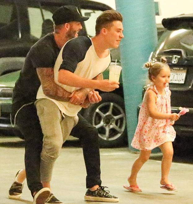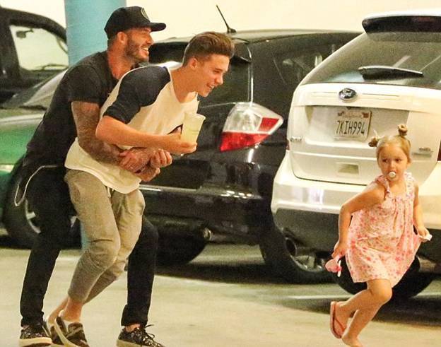 Вот и в пятницу бывший футболист был замечен в районе Голливуда со своим старшим сыном Бруклином и дочерью Харпер. Компания направлялась к своей машине после обеда в одном из местных кафе.