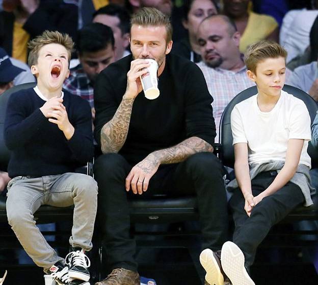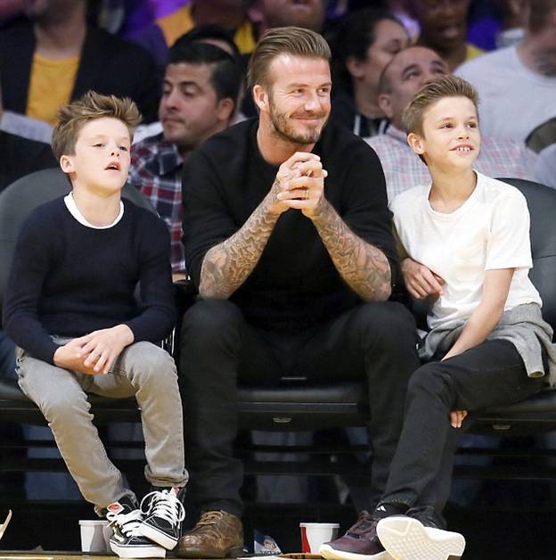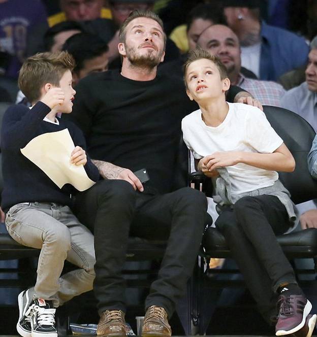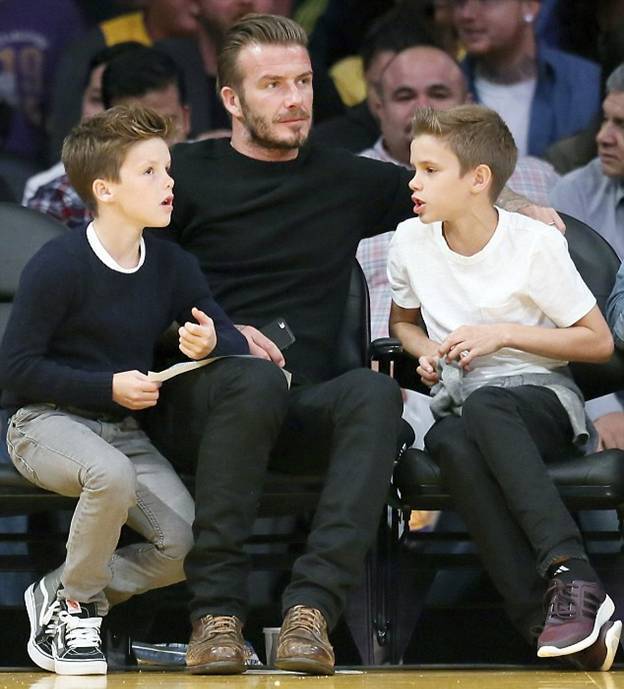 Воскресный вечер Дэвид Бекхэм провел со своими сыновьями Крузом и Ромео на матче игры их любимой баскетбольной команды Лейкрес. Надо заметить, что Дэвид сейчас находится в Штатах с детьми в одиночестве.