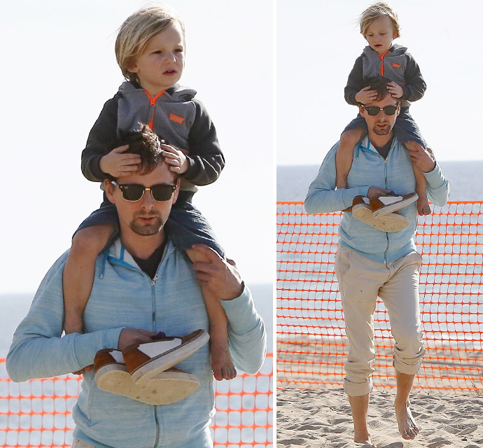 Мэтт Беллами воспользовался прекрасной погодой и, взяв сына Бинга, решил с ним погулять по побережью Малибу.