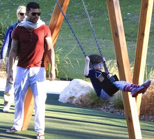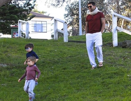 Так как певец знал, что едет в Австралию надолго, он взял с собой своих сыновей: Маттео и Валентино. В воскресенье их заметили в городском сиднейском парке. Отец с близнецами с удовольствием катались на качелях и изучали окрестности парка.