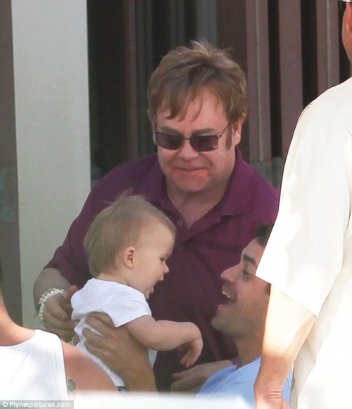 Так же с ними отдыхали друзья и члены группы сэра Элтона, причем они все старались развлечь маленького Захария.