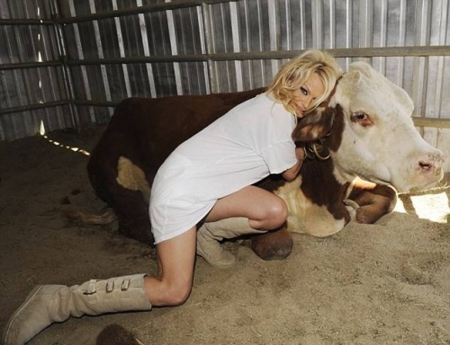 Она когда-то стала известной благодаря демонстрации своего идеального тела на пляжах Малибу. Но в данный момент Памела Андерсон выглядит довольно счастливой и в сарае с животными, видимо она не могла сопротивляться очарованию животных на ферме в Валенсии, Калифорния, которую 44-летняя актриса посетила вчера.