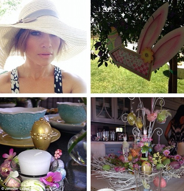 Дженнифер Лопес устроила семейный праздник для своих 4-летних близнецов Макса и Эммы. В Instagram заботливая мама выложила фото, на котором изображен знак, указывающий путь охоты за пасхальными яйцами, а также богато украшенный стол, конечно же, с тарелкой ярко окрашенных яиц.