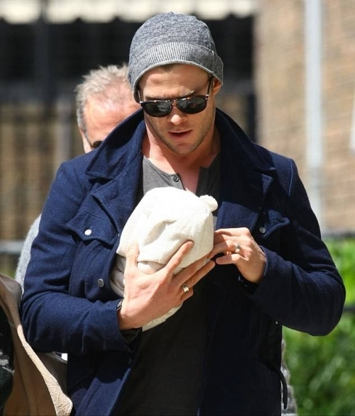 Ее муж, так же рад провести свое время вместе со своими любимыми женщинами и хоть чуть-чуть отдохнуть от бешеного ритма работы. Весь прошлый месяц актер занимался рекламой фильма «Мстители», вместе с ним он объездил пол мира. Не успев отдохнуть, он принялся за рекламную компанию своего следующего фильма «Белоснежка и охотник», мировая премьера которого состоялась в Лондоне два дня назад. В своем интервью Хемсворт сказал E!: «Я хотел ребенка уже в течение длительного времени, и вот он наконец появился. Я не могу не быть счастливым».