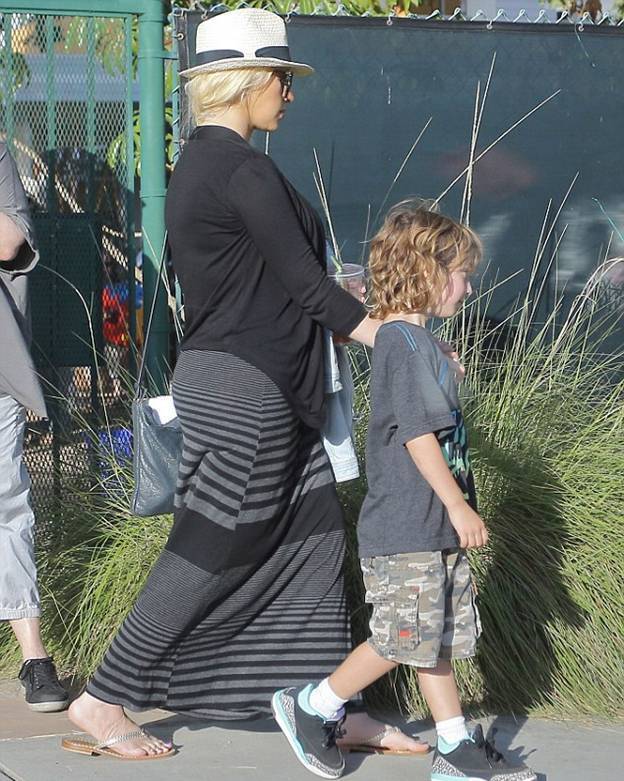 Певица со старшим сыном, шестилетним Максом, и его отцом, бывшим мужем Джорданом Братманом, гуляла по городскому парку Лос-Анджелеса. Ее жениха Мэттью Рутлера и их новорожденной дочери Summer Rain (Суммер Райан, что в переводе Летний дождь) не наблюдалось.