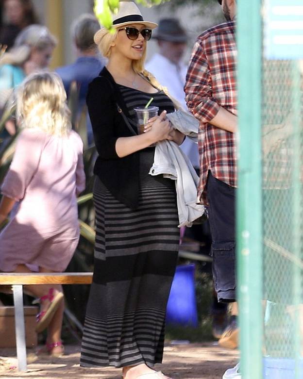 Кристина Агилера впервые была замечена после своих вторых родов, которые прошли около двух недель назад.