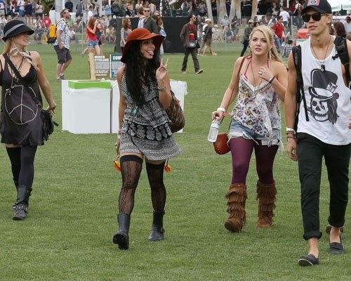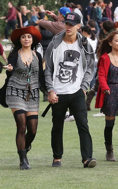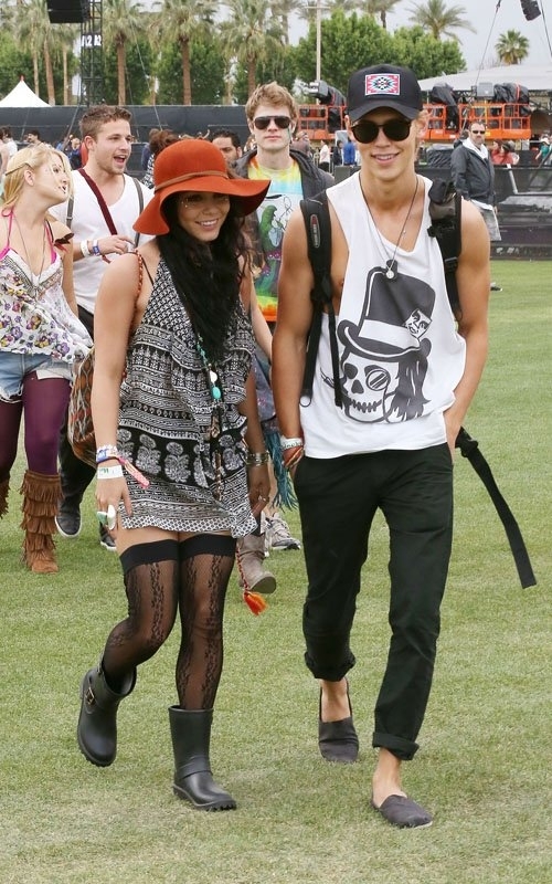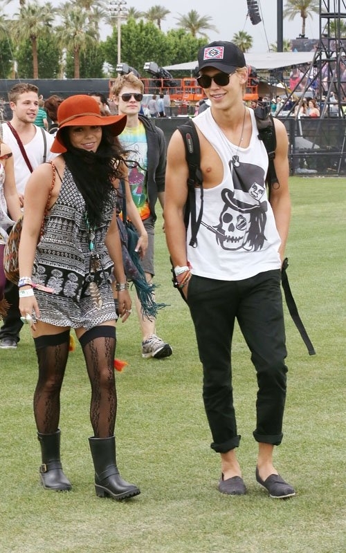 Первыми звездочками замеченными на фестивале оказались Ванесса Хадженс и ее парень актер Остин Батлер. Пара наслаждалась хорошей погодой и отличным настроением. Они никогда не стеснялись проявлять свои чувства на публике, и этот раз не стал исключением.
