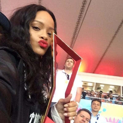 "Rude Boy" певица присутствовала на матче на стадионе Маракана в Рио-де-Жанейро, Бразилия, и не смогла сдержать волнение, когда Марио Гетце забил в дополнительное время решающий гол и заработал для Германии ее четвертый успех в финале.