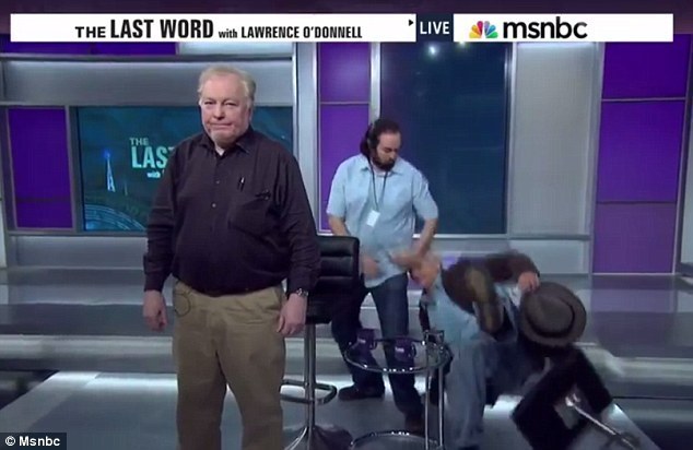 Во вторник вечером прямо в прямом эфире ток-шоу с Лоуренсом О'Доннелл "The Last Word" Билл Мюррей упал со стула.