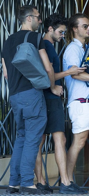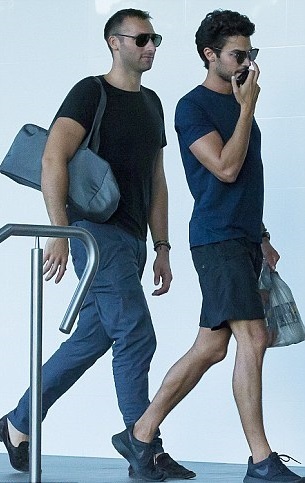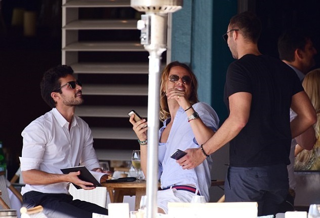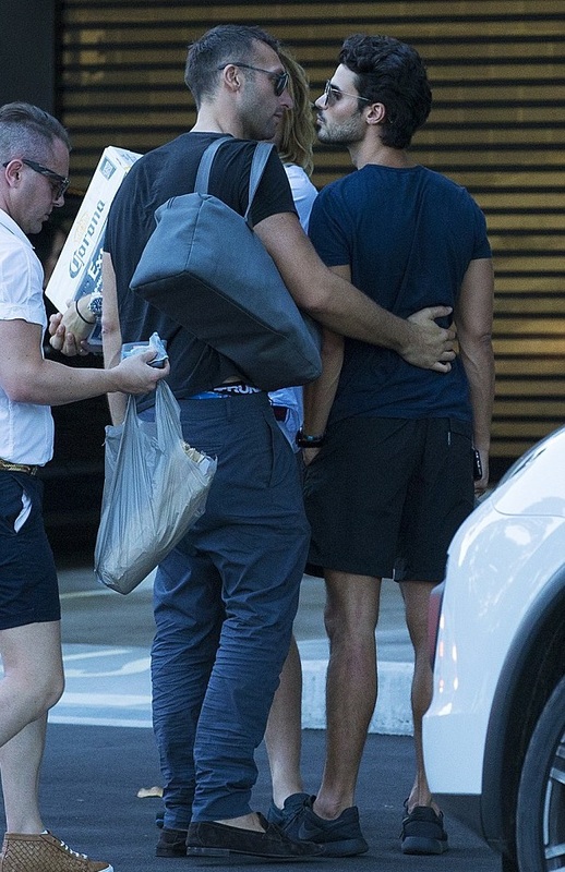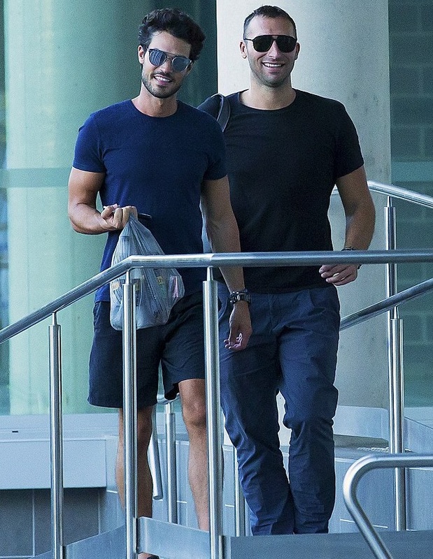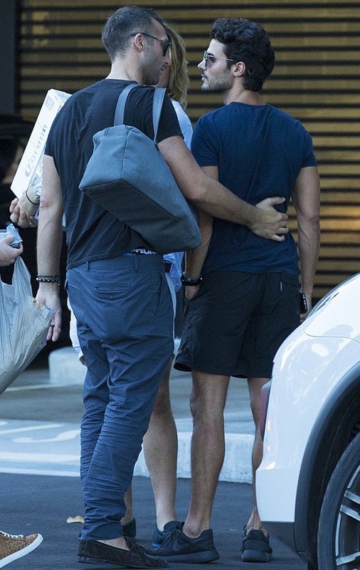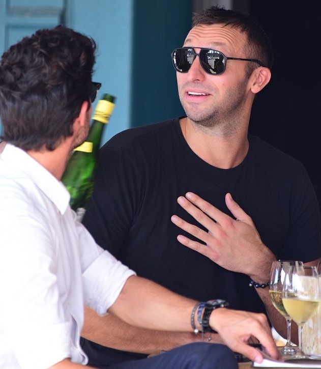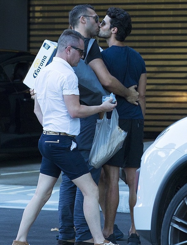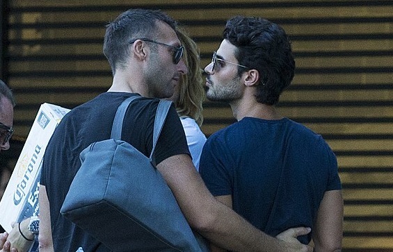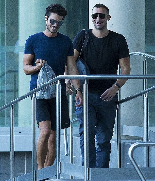 Парни не стеснялись показывать свои чувства на публику. Стоя у железных ворот ресторана Манта, спортсмен взял крепко за талию свою модель и уткнулся ему в шею. Был и поцелуй, который запечатлели папарацци.