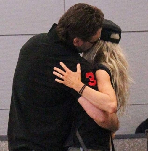Рассел Кроу со своей женой в аэропорту Нью-Йорка, 30 июня 2012 г