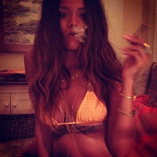 Она любит баловать поклонников, размещая свои пикантные фотография на твиттере. И этот раз не стал исключением, в социальной сети в очередной раз появились провокационные фотографии Рианны, на которых она в нижнем белье курит подозрительные папиросы.