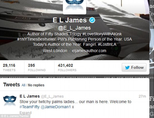 Писательница "Пятьдесят оттенков серого" Элен на своем твиттере сообщает, что Джейми сыграет роль Кристиана Грея