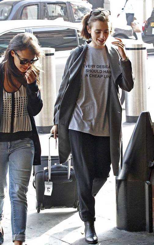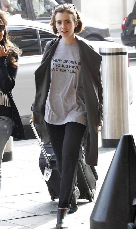 Что интересно, на Лили была одета футболка с надписью: "Каждый дизайнер должен иметь дешевую линию".