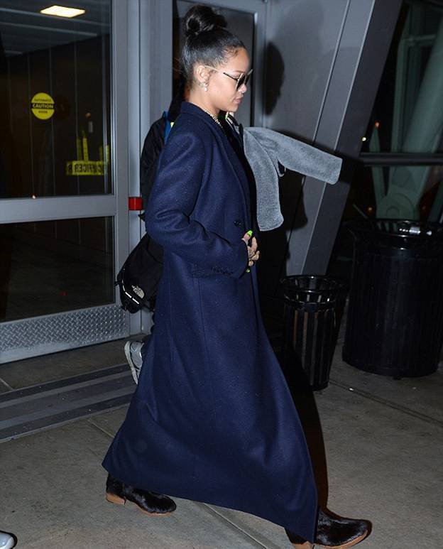 Рианна вернулась в Штаты из Лондона. Она была замечена в среду рано утром в аэропорту Кеннеди.