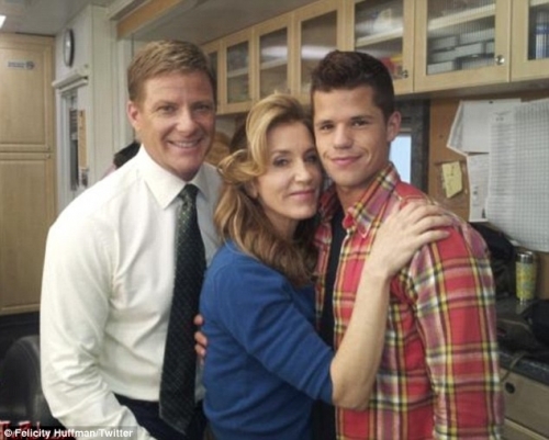 Актриса Фелисити Хаффман с своей съемочной семьей.