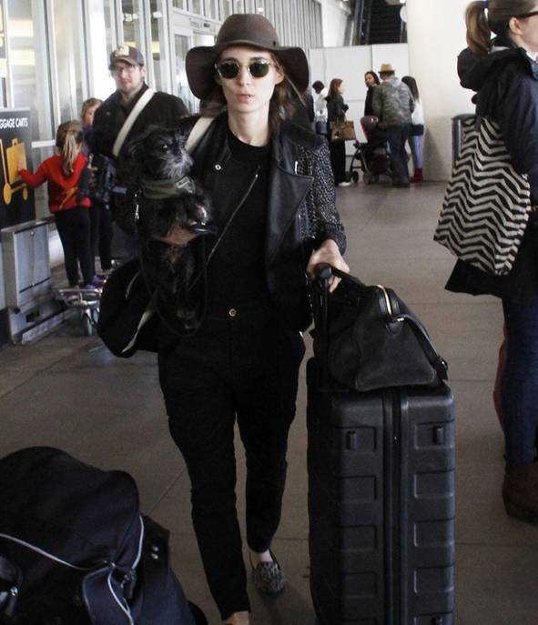Руни Мара также прилетела в Лос-Анджелес из Нью-Йорка в пятницу, второго января. Компанию ей составлял ее пес.
