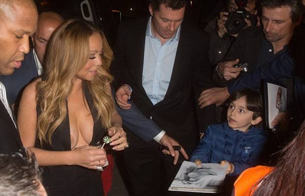 С чупа-чупсом в руке и смещенным декольте Мэрайя появилась перед фанатами
