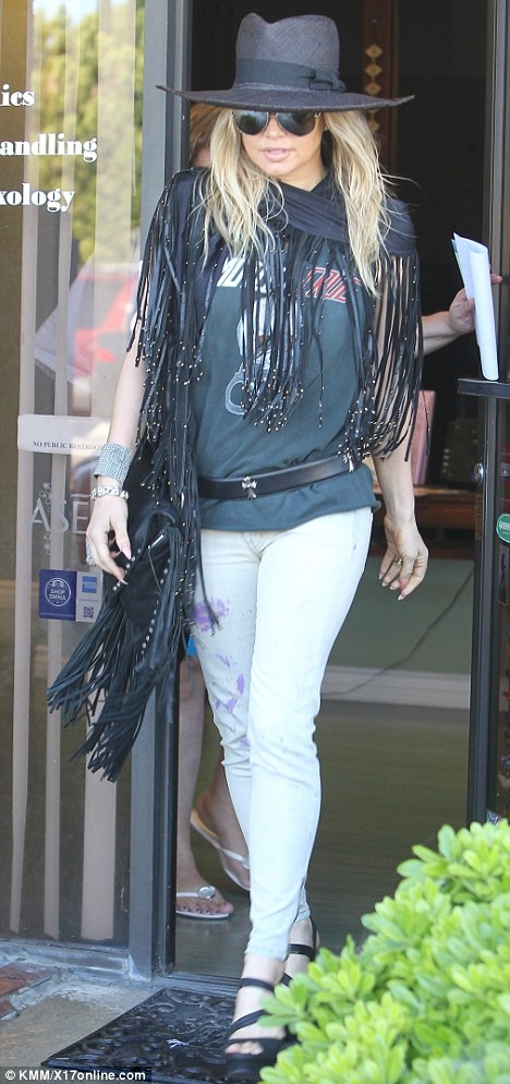 Певица, как всегда была шикарно одета, на ней была футболка Motley Crue и голубые узкие джинсы с фиолетовыми пятнами.