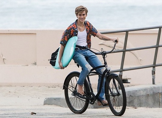 На съемочной площадке, которая расположилась в Малибу, Пресли позировал для рекламной кампании фирмы Casamigos Tequila, которую возглавляет его отец Рэнди Гербер. Парень щеголял по пляжу с доской для серфинга, одетый в толстовку с надписью "Синди Кроуфорд".