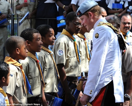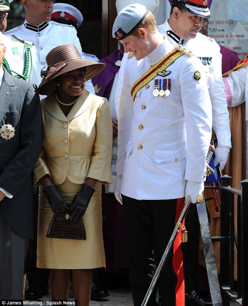 Содружество Багамских Островов — независимое государство в составе Британского Содружества. Глава государства — королеваВеликобритании, представленная генерал-губернатором. Он назначается Британским правительством и отвечает за оборону, внешнюю политику и внутреннюю безопасность Багамских островов. Принц Гарри был одет более официально в отличие от визита на Боленез. Хотя Гарри сейчас служит в авиации, в частности пилотом вертолета Apache, он до сих пор официально еще числится в кавалерийском полке Его величества, поэтому и парадную форму он одел соответственно кавалерийскую, правда вместо пилотки на голову одел голубой берет армейской авиации. Встречал принца Гарри генерал-губернатор Багамских островов сэр Артур Фолкс.