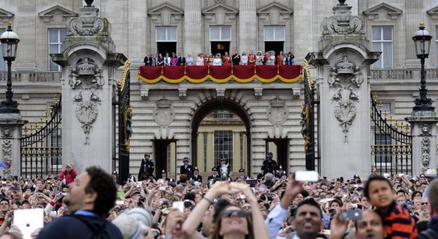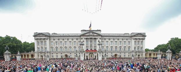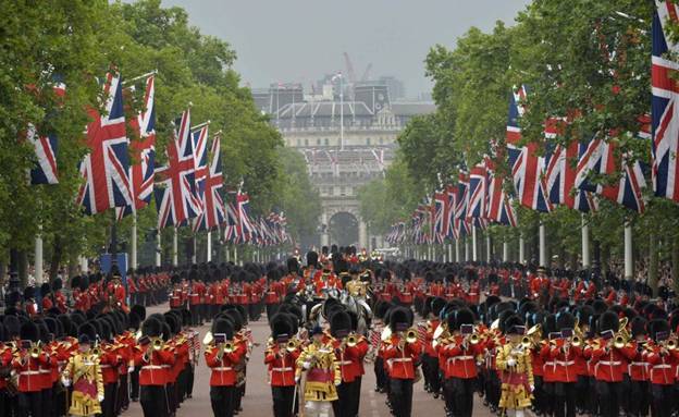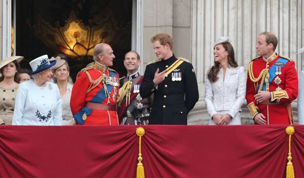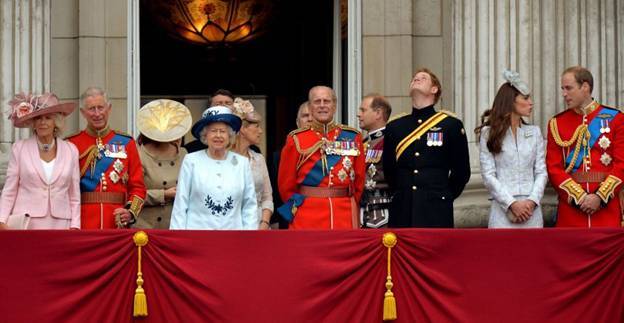 В честь дня рождения королевы Великобритании Елизаветы II в субботу прошел ежегодный парад Trooping the Colour, на который собралось несколько тысяч человек. Как всегда парад принимала сама королева и все ее многочисленные родственники, стоя на балконе Букингемского дворца.