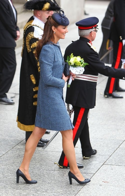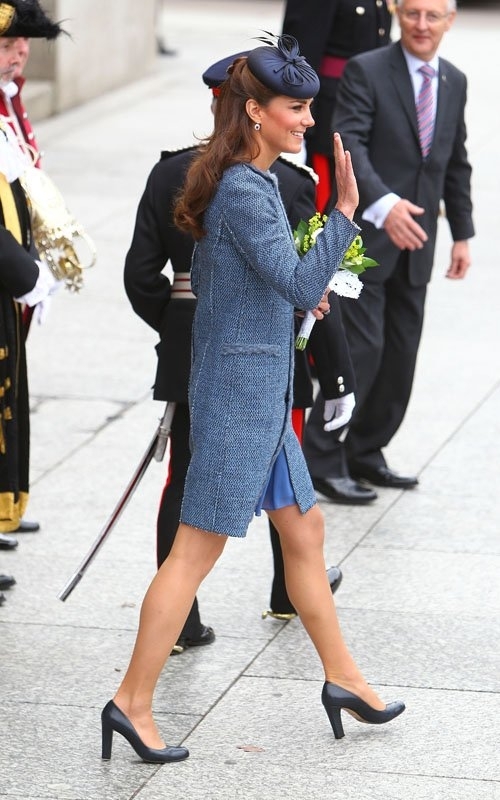 Чуть позже они вышли на его балкон и по-приветствовали толпу народа, который пришел поздравить свою королеву. Герцогиня Кембриджская превосходно смотрелась в синем твидовом пальто от Missoni.