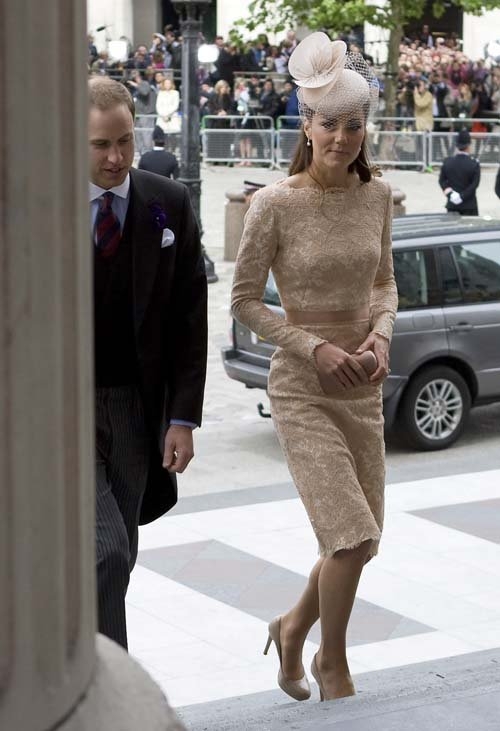 Герцогиня была очаровательна и приковывала к себе взгляды в светлом платье от Alexander McQueen, на голове у нее красовалась в тон платью шляпка Джейн Тейлор.