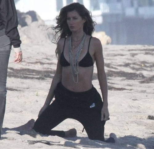 Бразильская супермодель, которая на этой недели снималась в фотосессии на пляже в Малибу, видимо неаккуратно намазалась солнцезащитным кремом, в результате чего ее грудь и живот местами обгорел, так что можно сказать модель получила производственную травму.