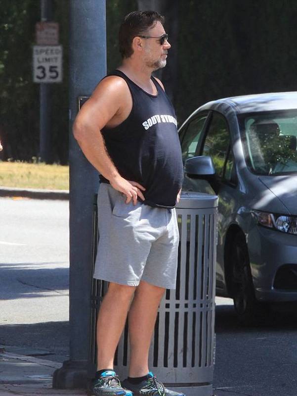 Рассел Кроу известен тем, что постоянно сражается со своим лишним весом с переменным успехом - то он набирает вес, то его сбрасывает.