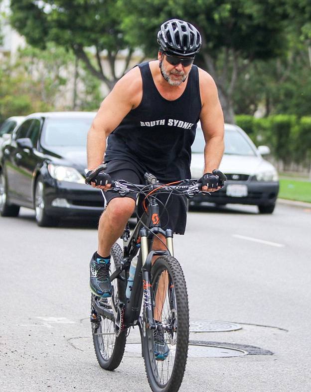 Рассел прогуливался по Лос-Анджелесу в футболке и шортах, которые не могли скрыть того, что актер довольно сильно набрал в весе. Тем не менее, судя по тому, что передвигаться он предпочитал на велосипеде, а не машине, актер не собирается сдаваться и намерен снова похудеть.