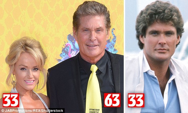 63-летний Дэвид Хассельхофф с 33-летней Хейли Робертс сейчас и в возрасте 33 лет