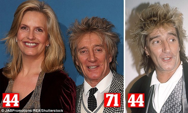71-летний Род Стюарт со своей 44-летней женой Пенни Ланкастер сейчас и когда ему было 44 года