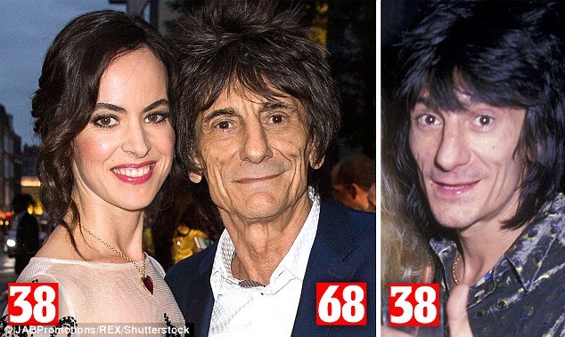 68-летний Ронни Вуд со своей 38-летней женой Салли Хамфрис сейчас и когда ему было 38 лет