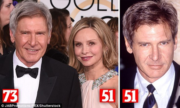 73-летний Харрисон Форд со своей 51-летней женой Калистой Флокхард сейчас и в 1993 году, когда ему был 51 год