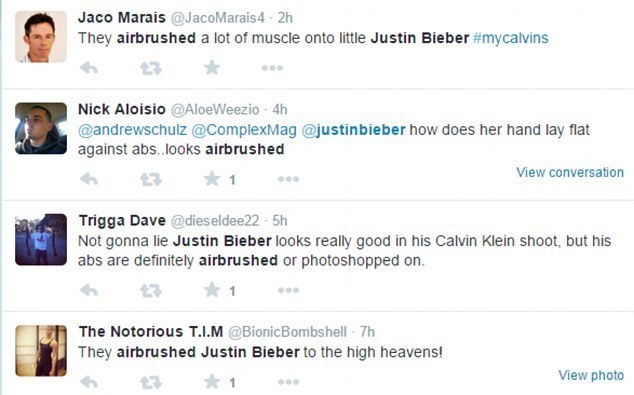 "Они обработали фигуру Бибера аэрографией до самых небес"; "Они нарастили мышцы на маленького Бибера" и это лишь самые мягкие из высказываний об использовании фотошопа в этой рекламной компании.