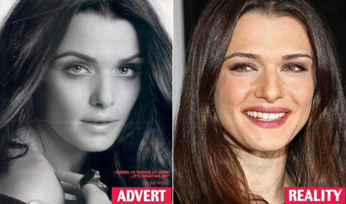 На рекламу фирмы L'Oreal с участием актрисы Рейчел Вайс наложила запрет международная ассоциация стандартов в рекламе (ASA). Фотография 41-летней актрисы, где она рекламирует антивозрастной крем, была сильно подвержена цифровой обработке, что бы выровнять цвет лица.