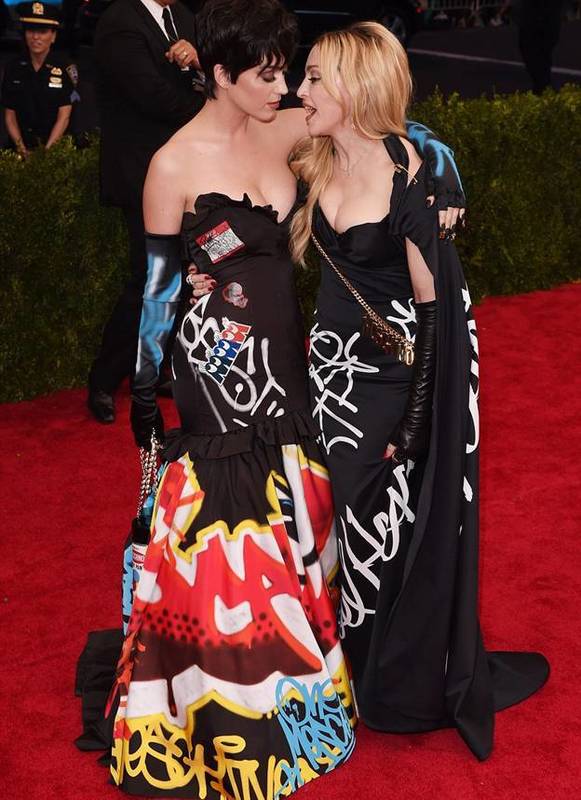 Кэти Перри и Мадонну в нарядах от Moschino;