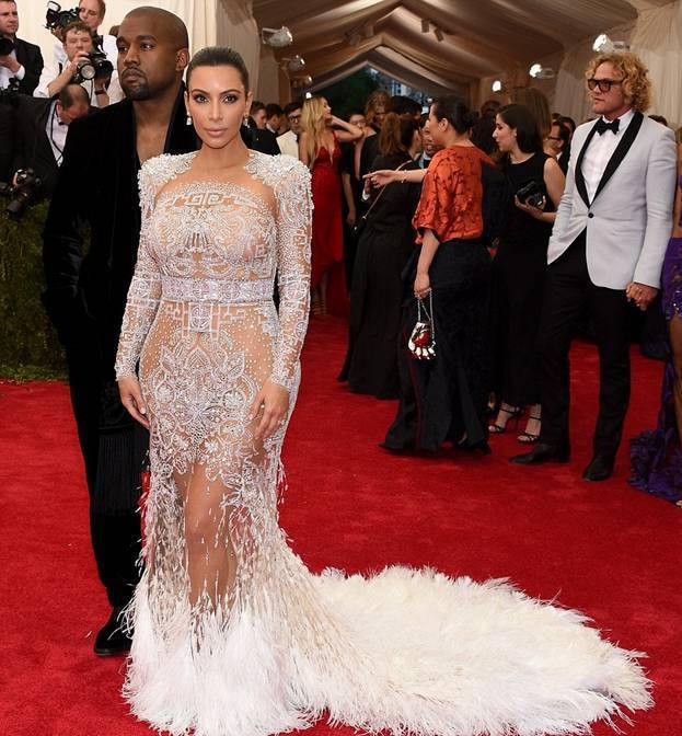 Канье Уэста и Ким Кардашян в наряде от Roberto Cavalli;