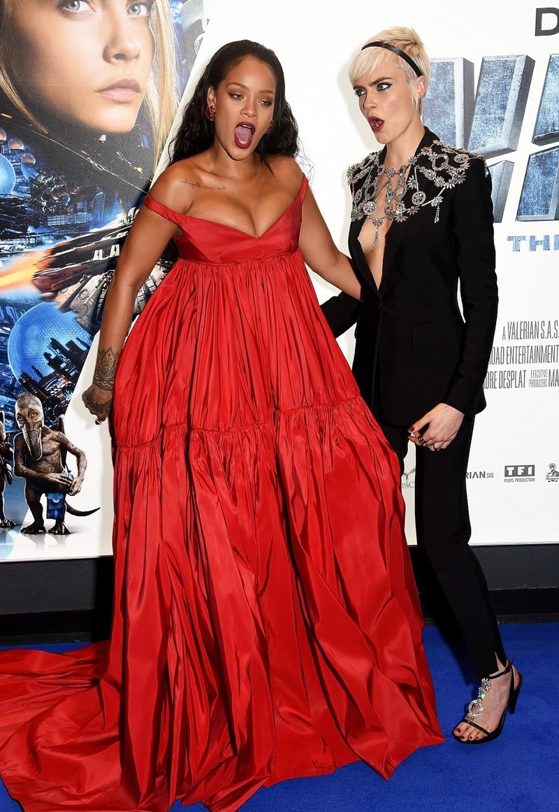 Минувшим вечером в Лондоне состоялась премьера нового фильма Люка Бессона "Валериан и город тысячи планет" (Valerian and The City of a Thousand Planets). На красной дорожке блистали Рианна и Кара Делевинь.