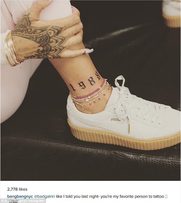 Рианна сделала себе новую татуировку. Она выложила в сети фотографию, на которой красуется ее лодыжка с рисунком в виде года ее рождения "1988".