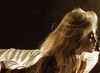 На девушке был одет сложный наряд: украшенный бриллиантами бюстгальтер, и бикини, огромное украшения для волос и крылья.