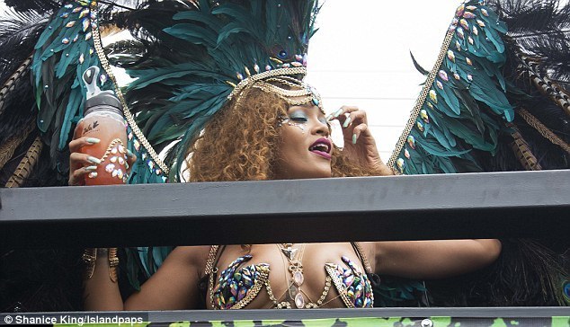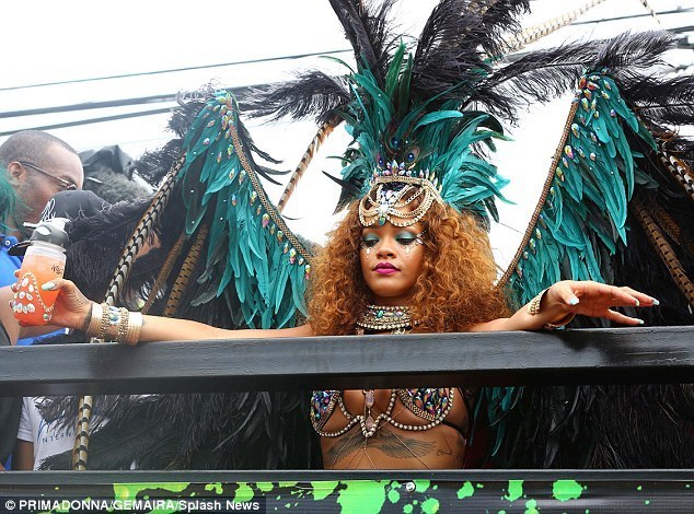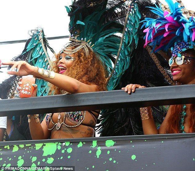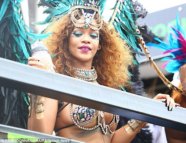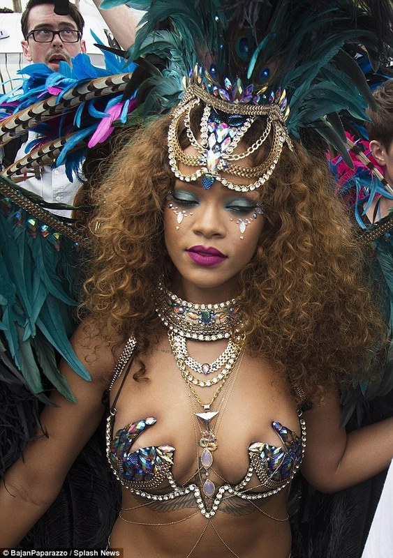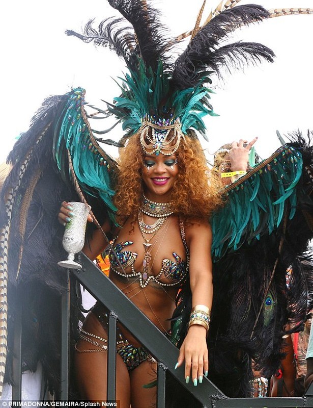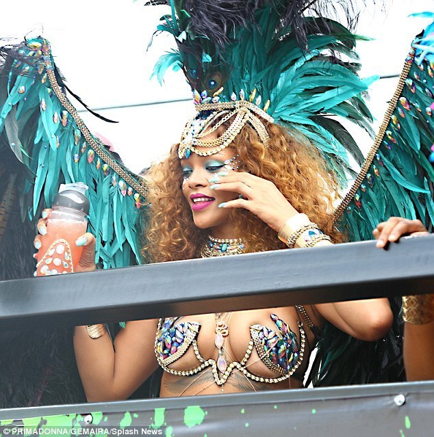 27-летняя певица вернулась в Карибский бассейн, родной Барбадос, для участия в одном из ее любимых ежегодных мероприятий - карнавал Grand Kadooment Day.